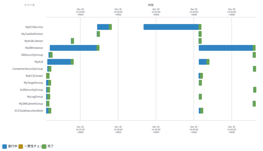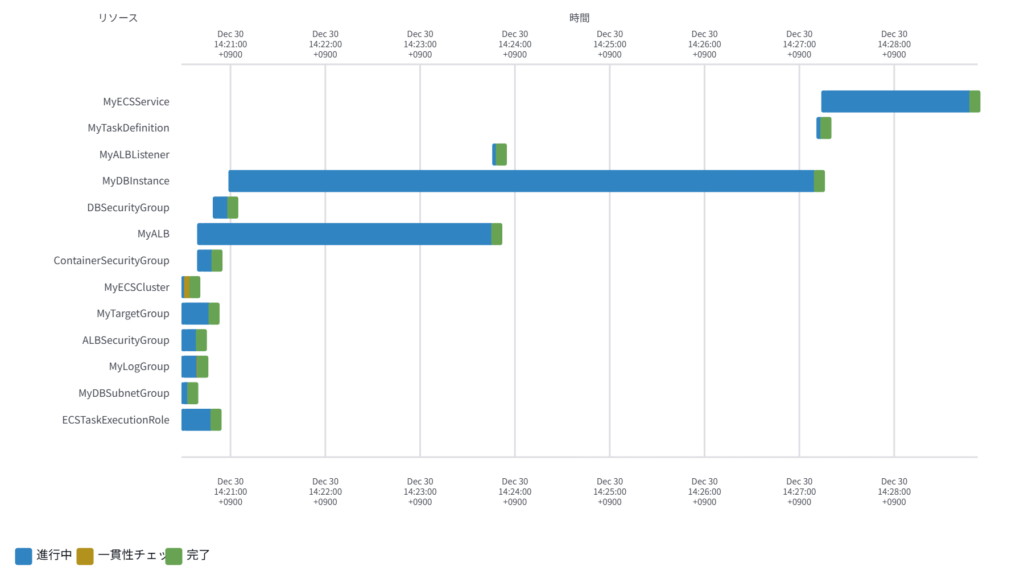 RDS, ALB, ECSが作成されるまでにかかった時間を見てみましょう。